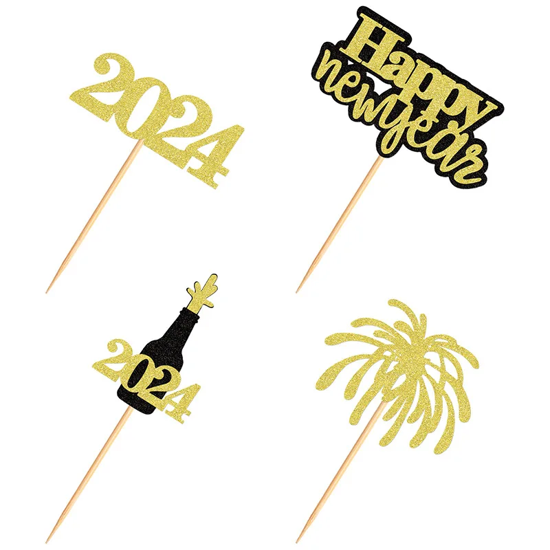 Amazon.com: 24 Pcs Glitter Happy New Year Cupcake Toppers 2024